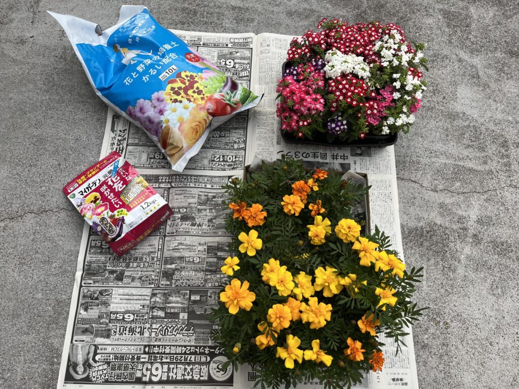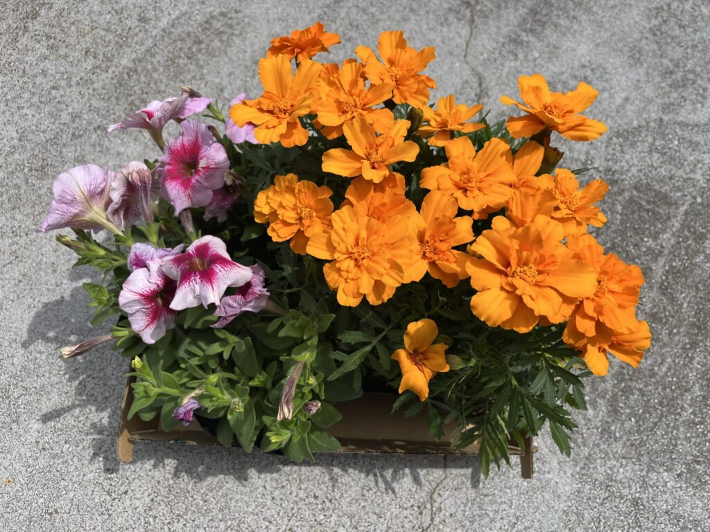 マリーゴールド、ペチュニア、そしてバーベナ。