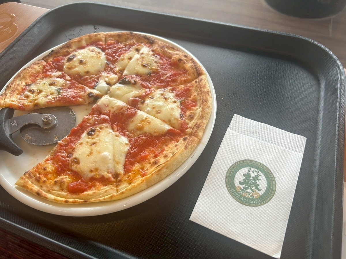 熱々のピザを持ち上げると、チーズがびよ〜ん。