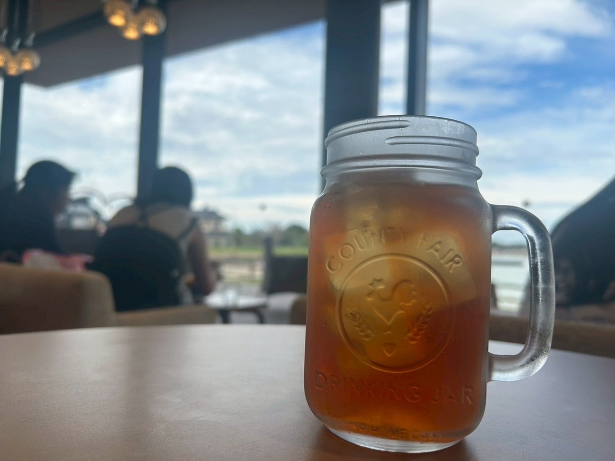 キラキラ光る水面を眺めながらカフェタイムだなんて、