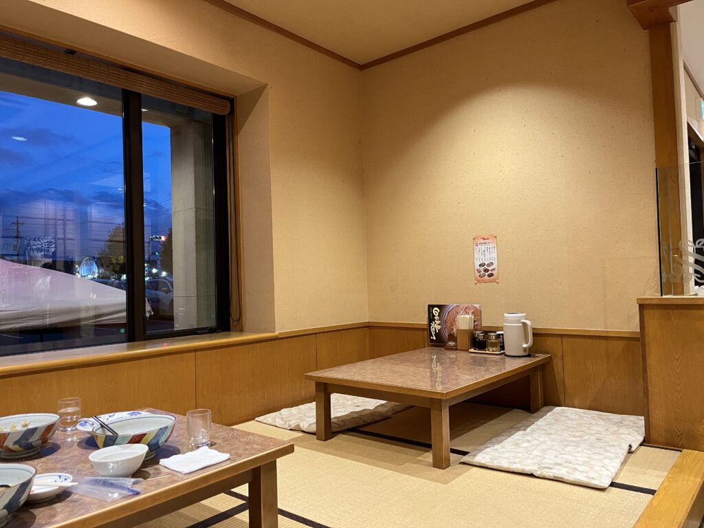 テーブルもカウンターもあって、子供連れにも優しい畳席もあります。