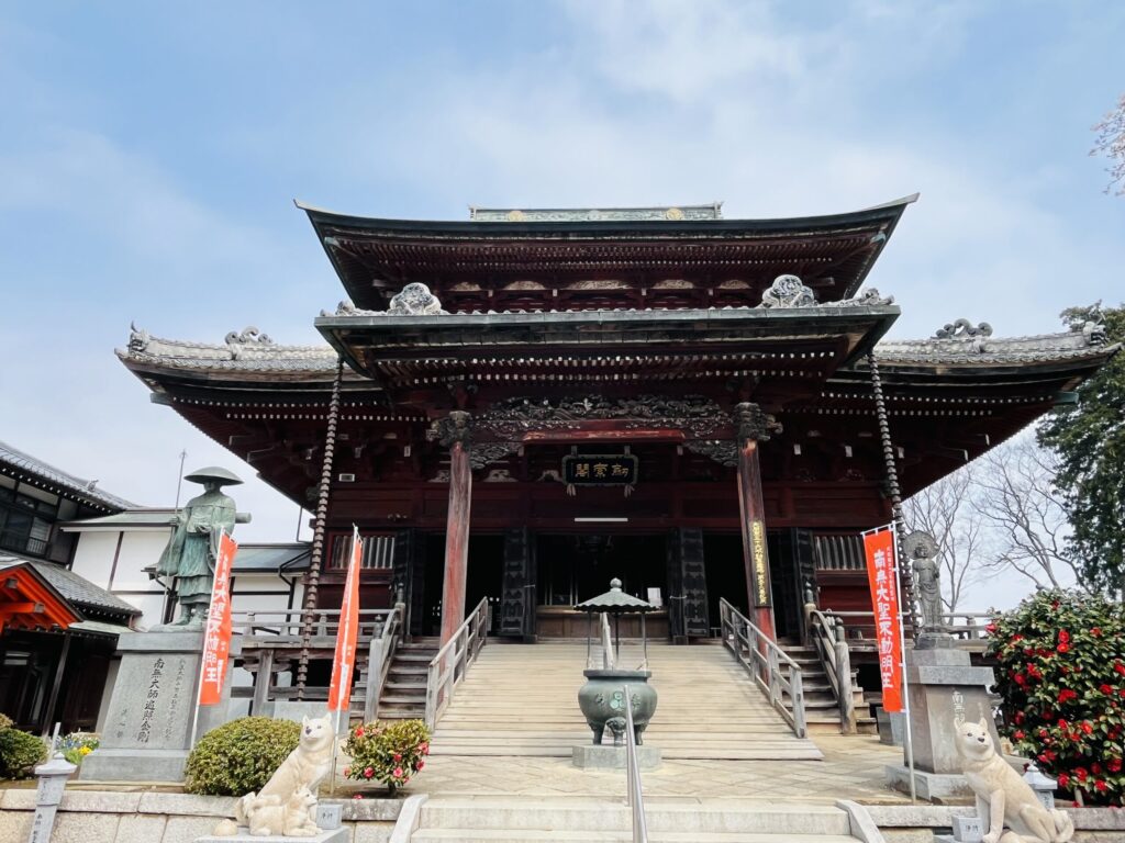 板橋不動尊 は、正式には 清安山 願成寺といい、古くから地域の人々に親しまれてきたお寺です。その歴史は古く、平安時代に弘法大師(空海)によって創建された と伝えられており、長い年月のあいだ多くの人々の信仰を集めてきました。歴史ある境内には厳かな空気が流れ、春には桜、季節ごとの自然も美しく、心静かにお参りできる場所として愛されています。