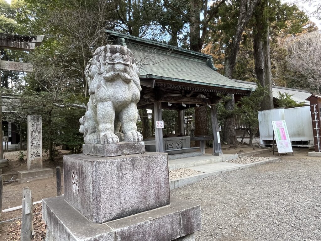 狛犬と手水舎