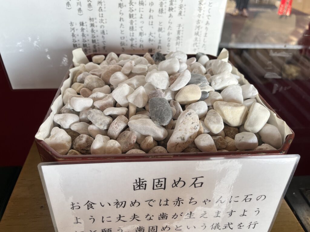 お食い初めで赤ちゃんに、石のような歯が生えますように…と、願い歯固めという儀式を行う時に使う石だそうです。