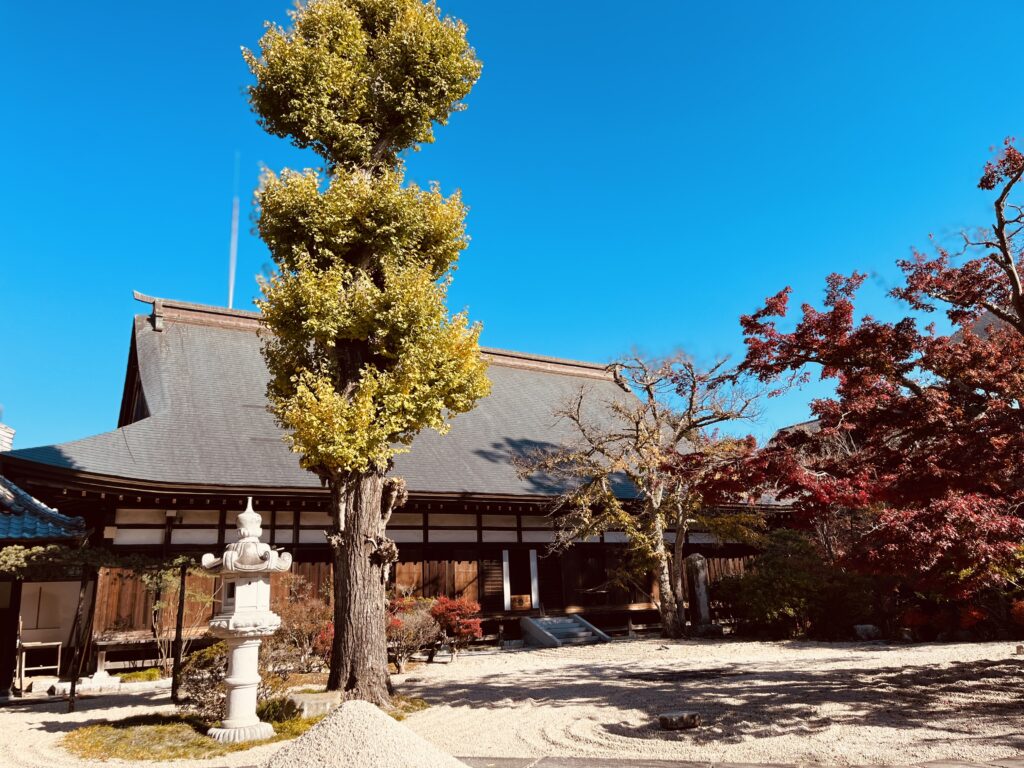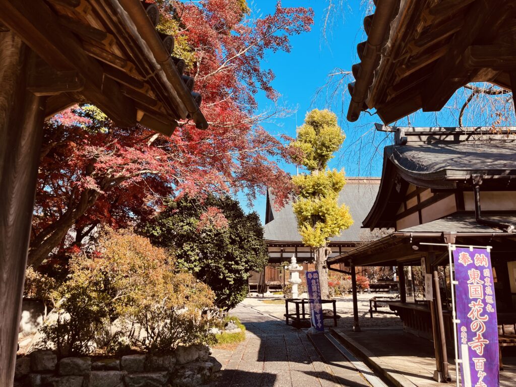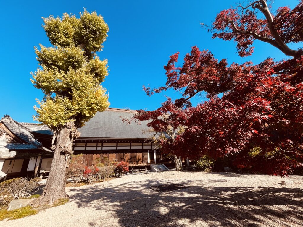 境内を包むモミジの赤やイチョウの黄金色が、古刹の風情と相まって、訪れる人々を穏やかな時間へと誘ってくれます。