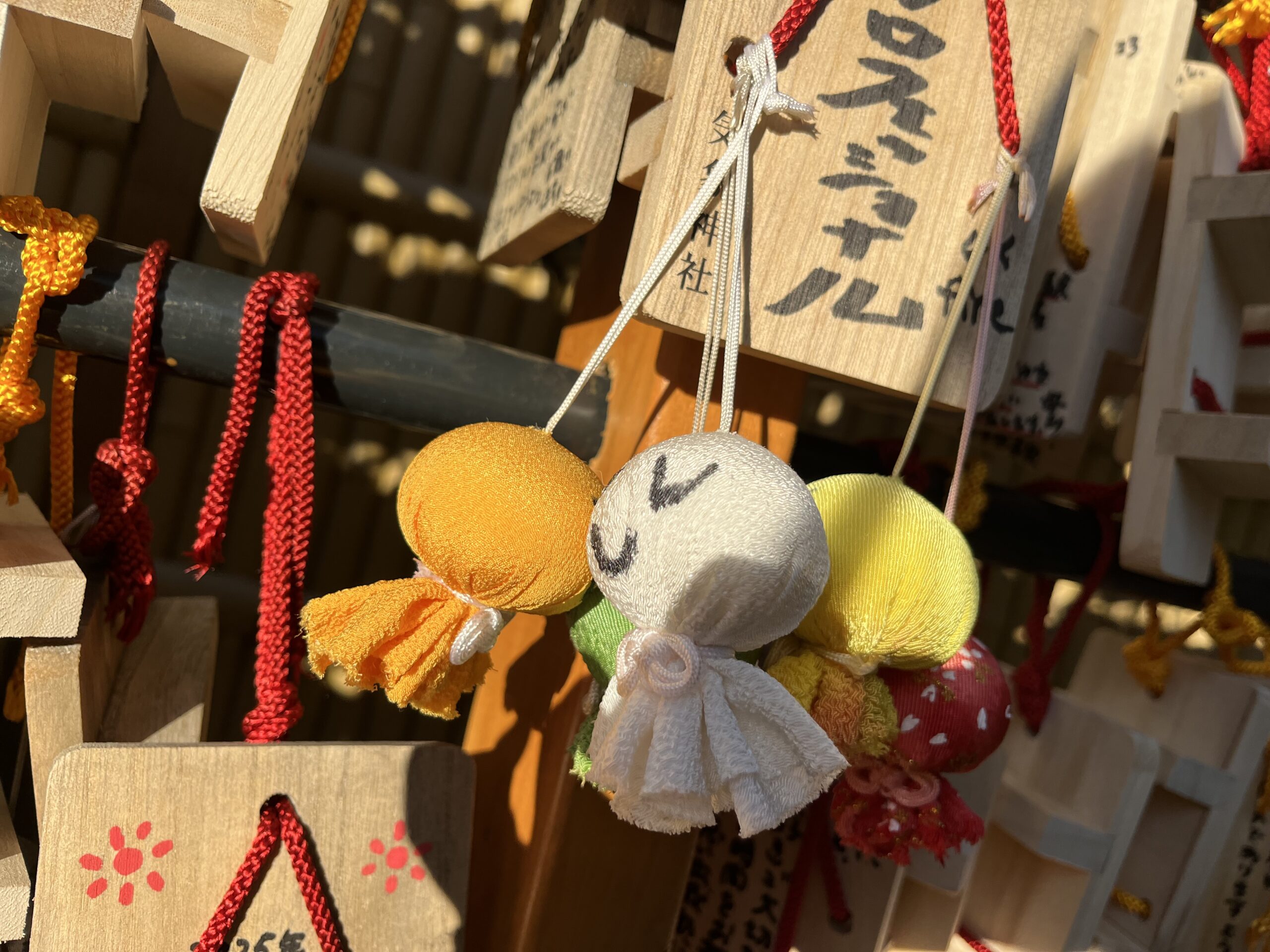 気象神社の人気の理由は、なんといってもユニークな「てるてる坊主型の絵馬」。
