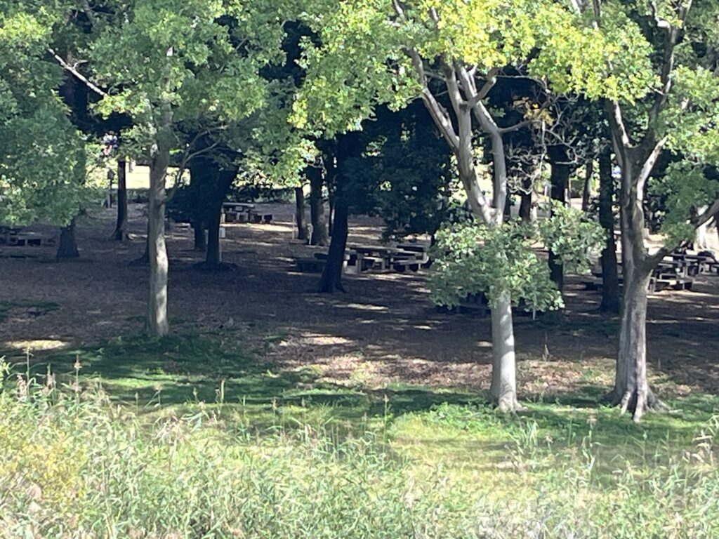 ふれあい公園の豊かな自然林の中には、森林浴とバーベキュースペースが。