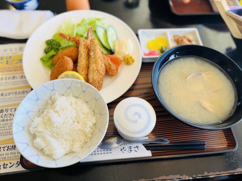 海鮮丼が人気のヤマサですが、実は隠れファンが多いのが 「ミックスフライ定食」。揚げ物好きにはたまらない、満足感あふれる一皿です。
