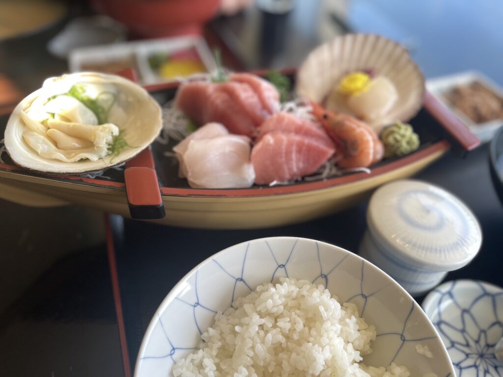 「刺身をしっかり味わいたい」という方にはこちら。厚切りで食べ応えがあり、白いご飯との相性が抜群。味噌汁と漬物がつく昔ながらの定食スタイル。
